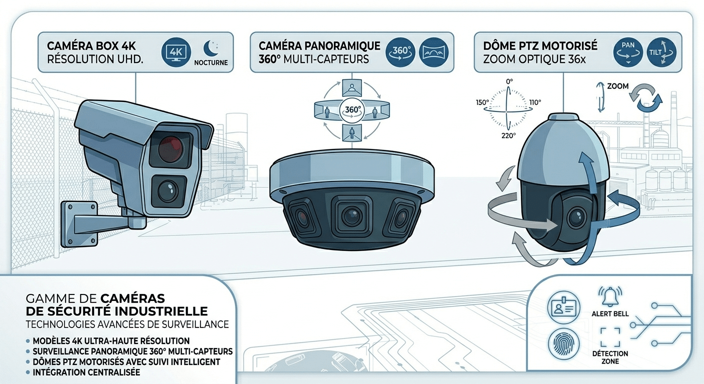 - Caméras HD 4K, panoramiques 360° et PTZ motorisées