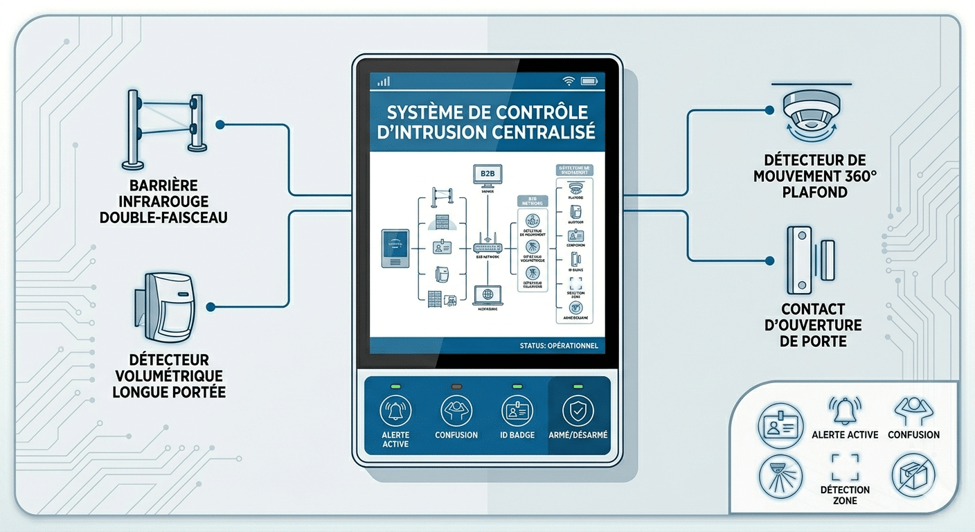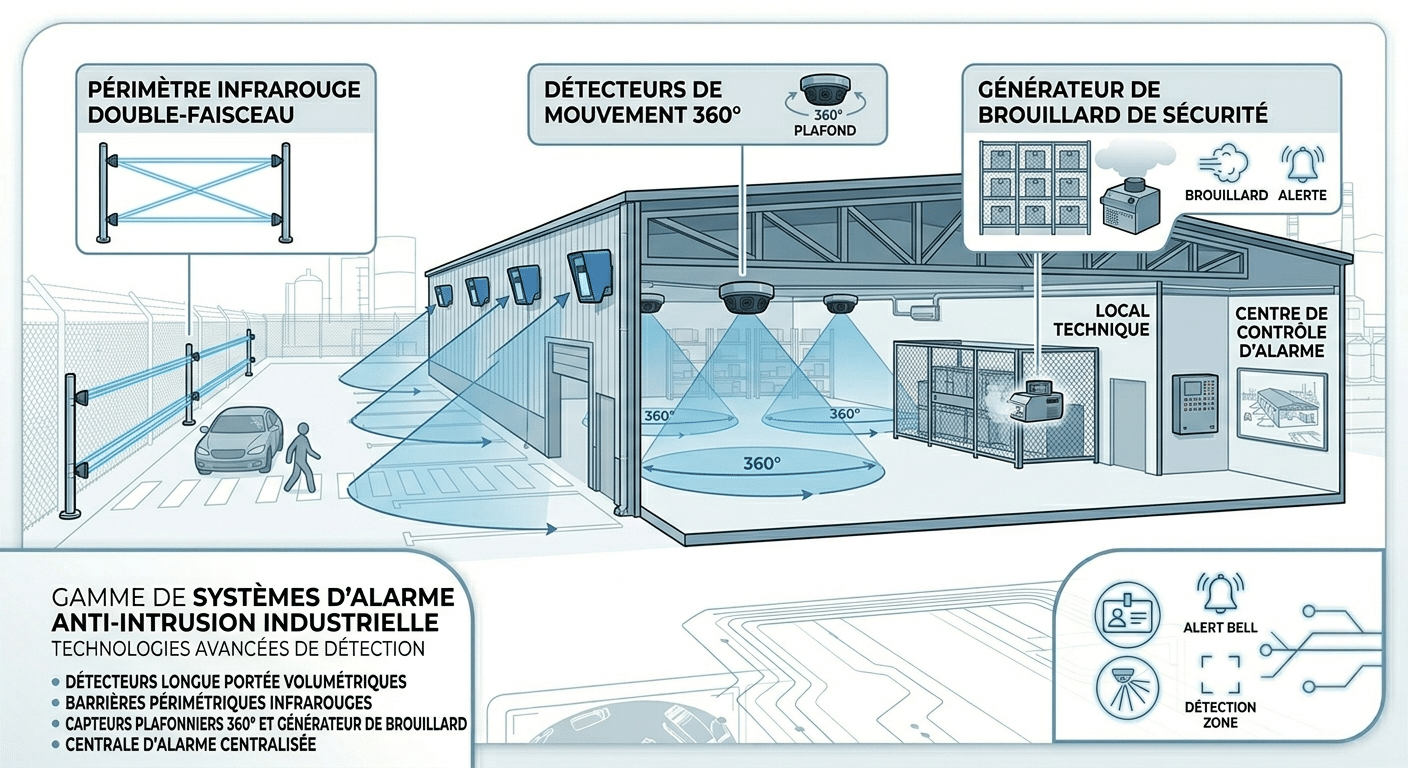- Détection périmétrique et volumétrique (radars, infrarouges, barrières micro-ondes)
